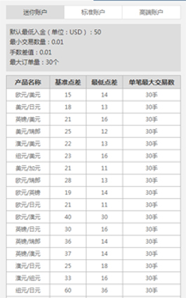 (一)账户类型说明:为满足不同类型客户投资需要,我司提供3种交易账户;详情点击【帐户类型介绍】查看。